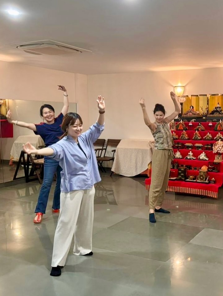 地下の「多目的すぎるホール」。現在の主役は雛人形。彼らに見守られながらのダンス練習。なかなかにシュールな情景だ。