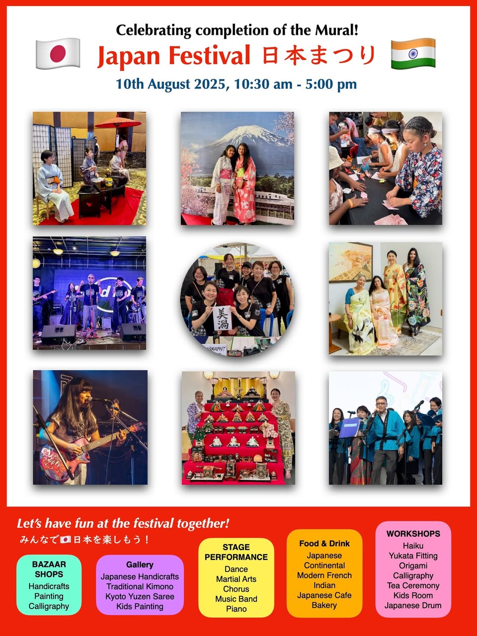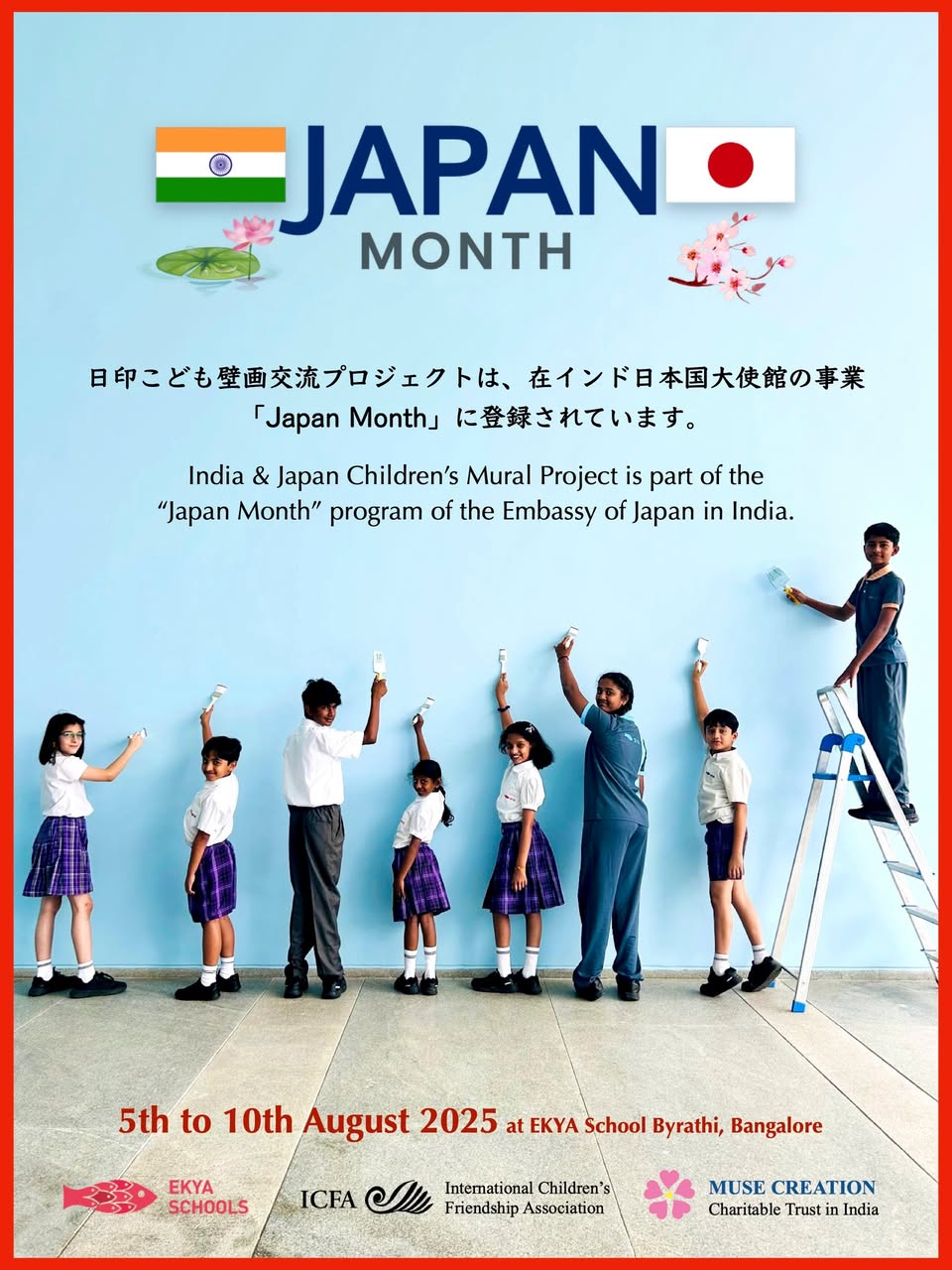 『日印こども壁画交流プロジェクト』は、数日前、在インド日本国大使館の事業のひとつである「Japan Month」に登録された。インドの蓮と日本の桜が愛らしい。
