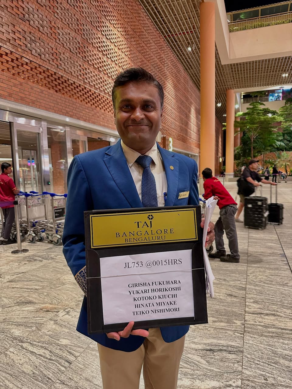 日本チーム、無事到着。日本航空、ベンガルール国際空港のご協力を得て、VIP待遇で到着した一行。空港敷地内にあるTAJ BANGALOREへのチェックインをサポートして、先ほど帰宅した。関係者のお陰で、快適なインド入りができたことを感謝する。