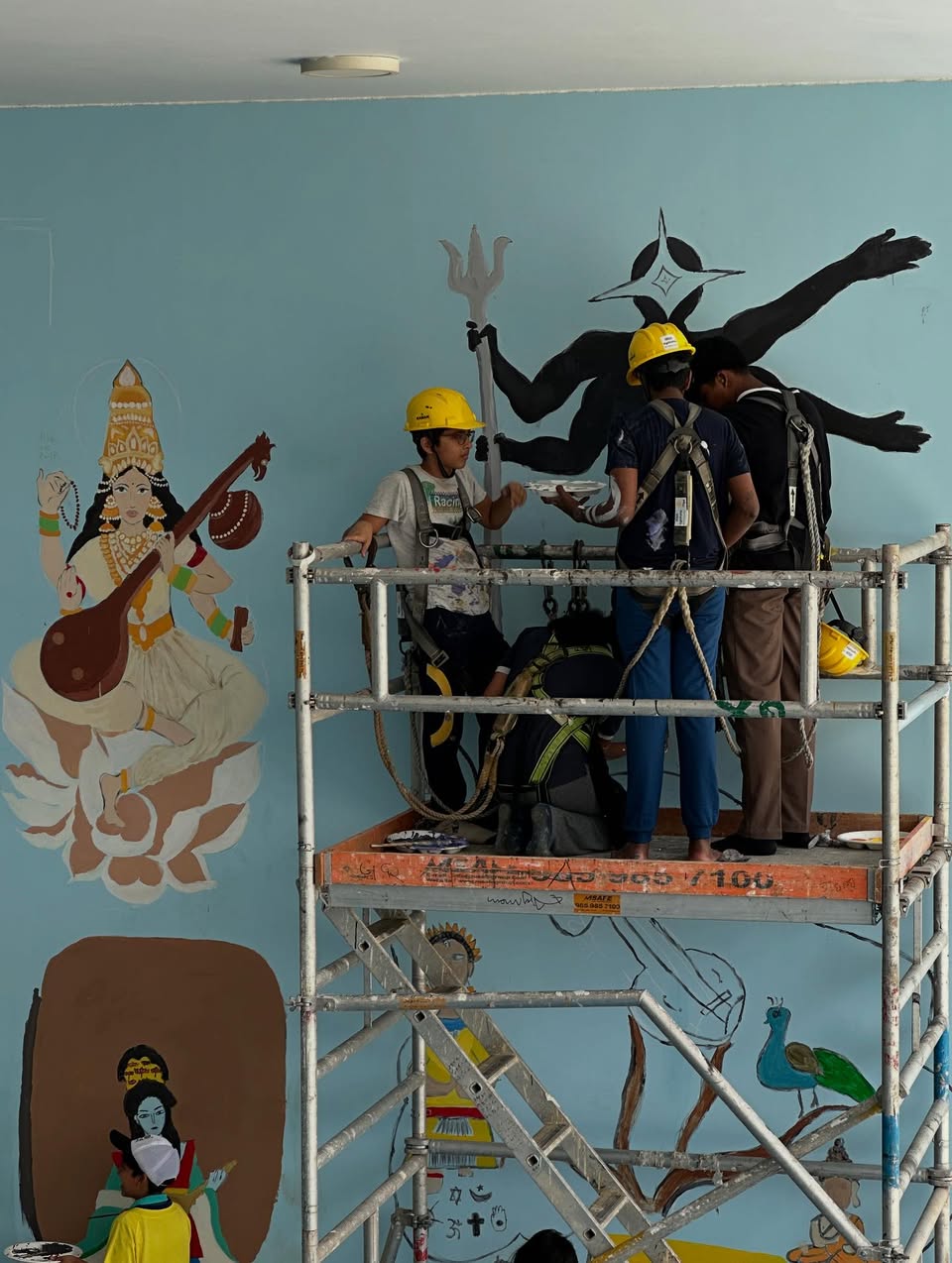 Wednesday. They cut out the sketches and put them on a light blue wall.