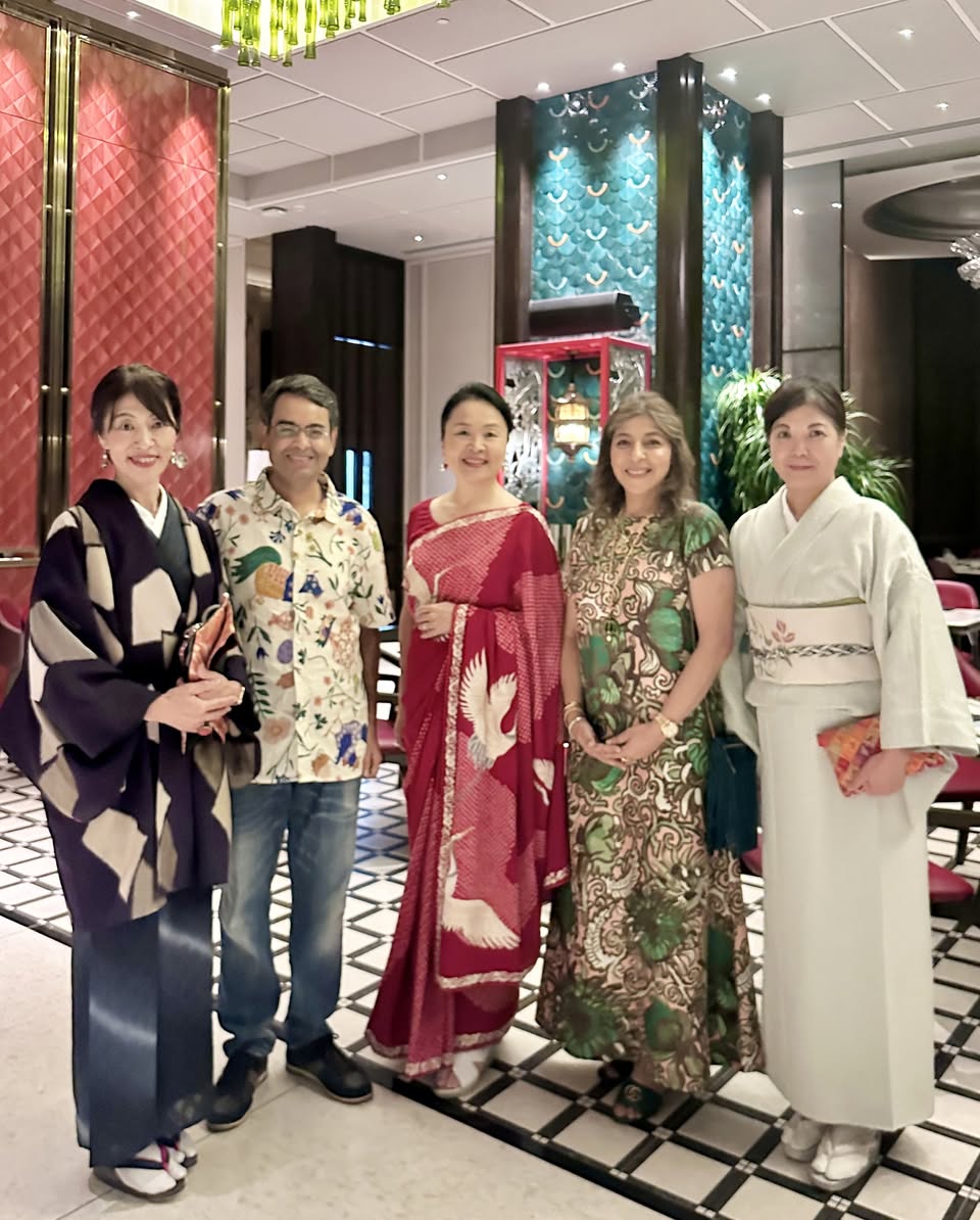 すでにこの4月、「ナマステ福岡」で着て以来、何度か着用している。MisaさんとMiyukiさんは、とてもすてきな着物姿に。展示会で着るつもりで日本から持参していたが、展示会では動き回ることもあり、みな浴衣を着ること決めた。