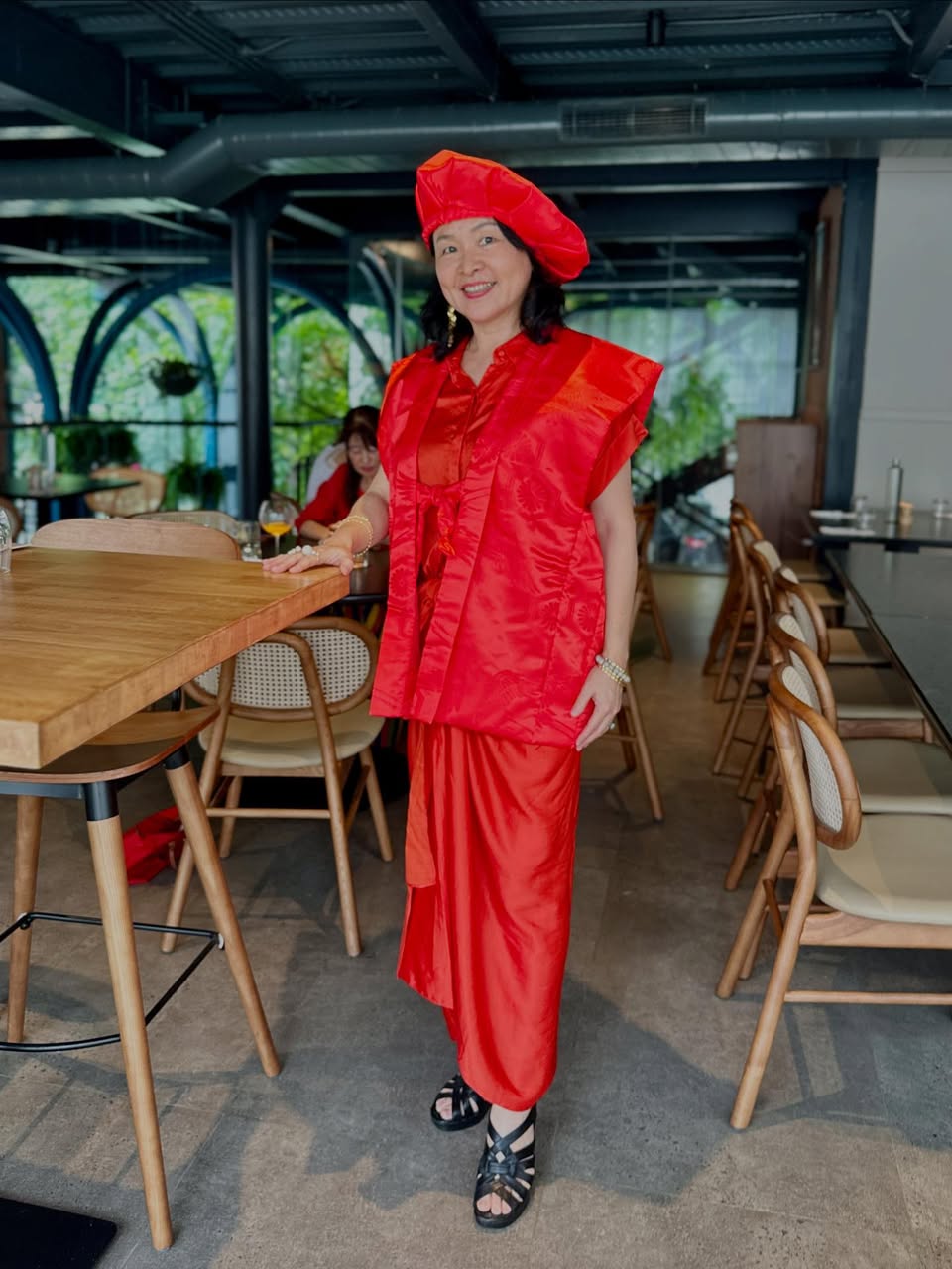 前回の一時帰国時にオンラインで購入していた「赤いちゃんちゃんこ」を持参して、Amiel Gourmetのヤラハンカ新店舗へ。幸い、店内はさほど込み合っておらず、赤に赤を重ねての記念撮影。還暦に赤い服を着る理由は原点回帰、すなわち「赤ちゃんに還る」とという意味合いからだ。また、赤には魔除けの力があるとも言われているらしい。