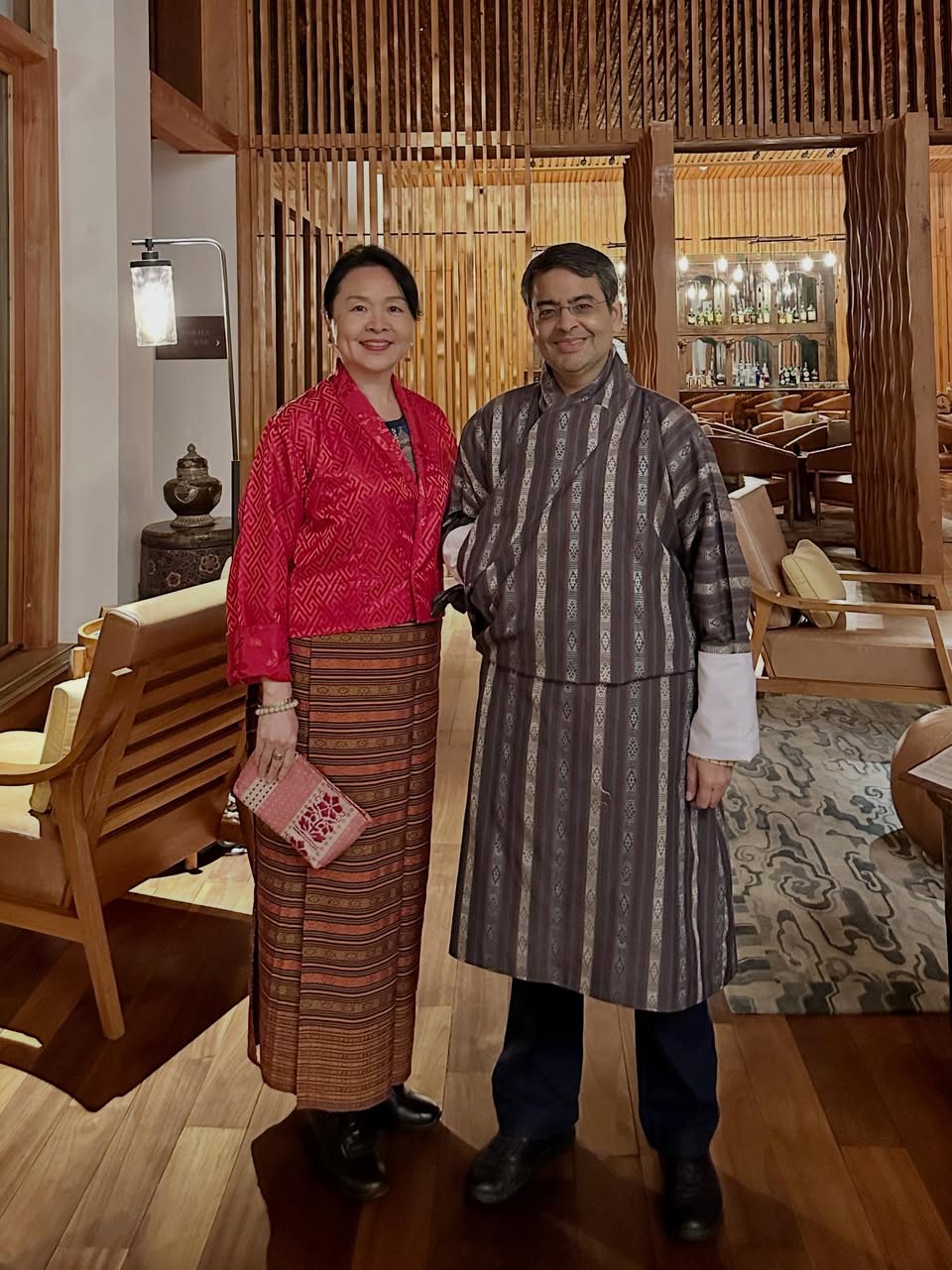 ツーリスト用なので、「キラ」は着用しやすいよう簡易なスタイルに縫製されているが、着てみると、それなりにさまになる。すっかりブータン人女性の気分だ。夫も「ゴ」がよく似合う。