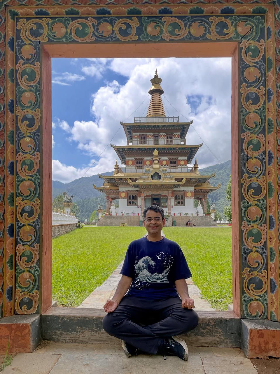 思った以上に短い時間で寺院に到着。三層構造のストゥーパ(仏舎利塔)が、青空に映えて美しい。ここもまた、内部の写真を撮影できないので、時間をかけてゆっくりと、1階、2階、3階……と、その絢爛たる種々の神々の姿を脳裏に焼き付ける。
