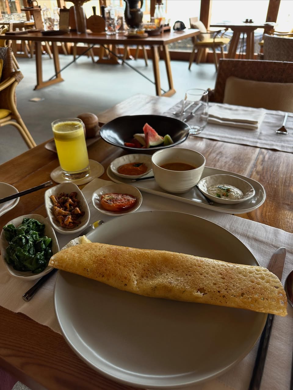 ちなみにSix Sensesプナカのシェフは、インド料理も得意だということで、昨日はマサラ・ドサを注文してみた。これがまた、独特の香ばしさと風味のよさで、非常においしい! 毎食毎食、心身によいものを食べているせいか、肌ツヤがよくなった気がする。