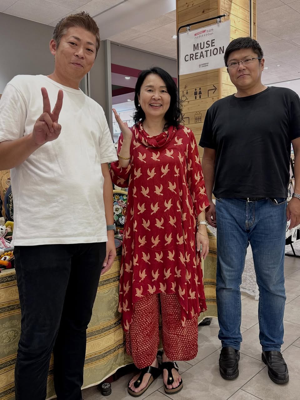 春の「ナマステ福岡」、そして8月末のバンガロールにおける「福岡クラフトフェア」に引き続き、MISAさんが搬入や搬出、販売のお手伝いをしてくれた。海の中道にご自身のお店もあるので、途中にそちらへ行き、また戻ってきてくれるなど。とても助かった。