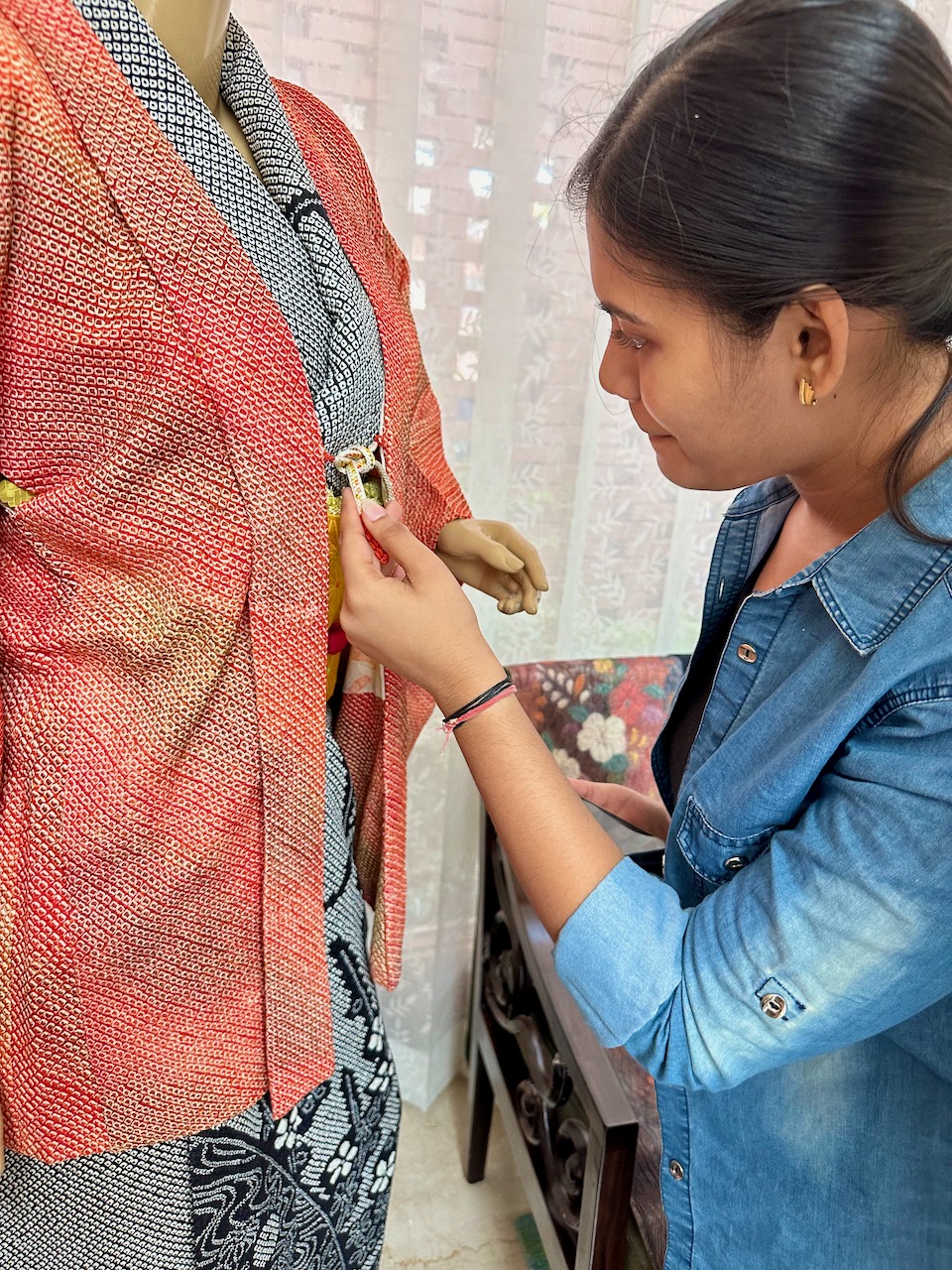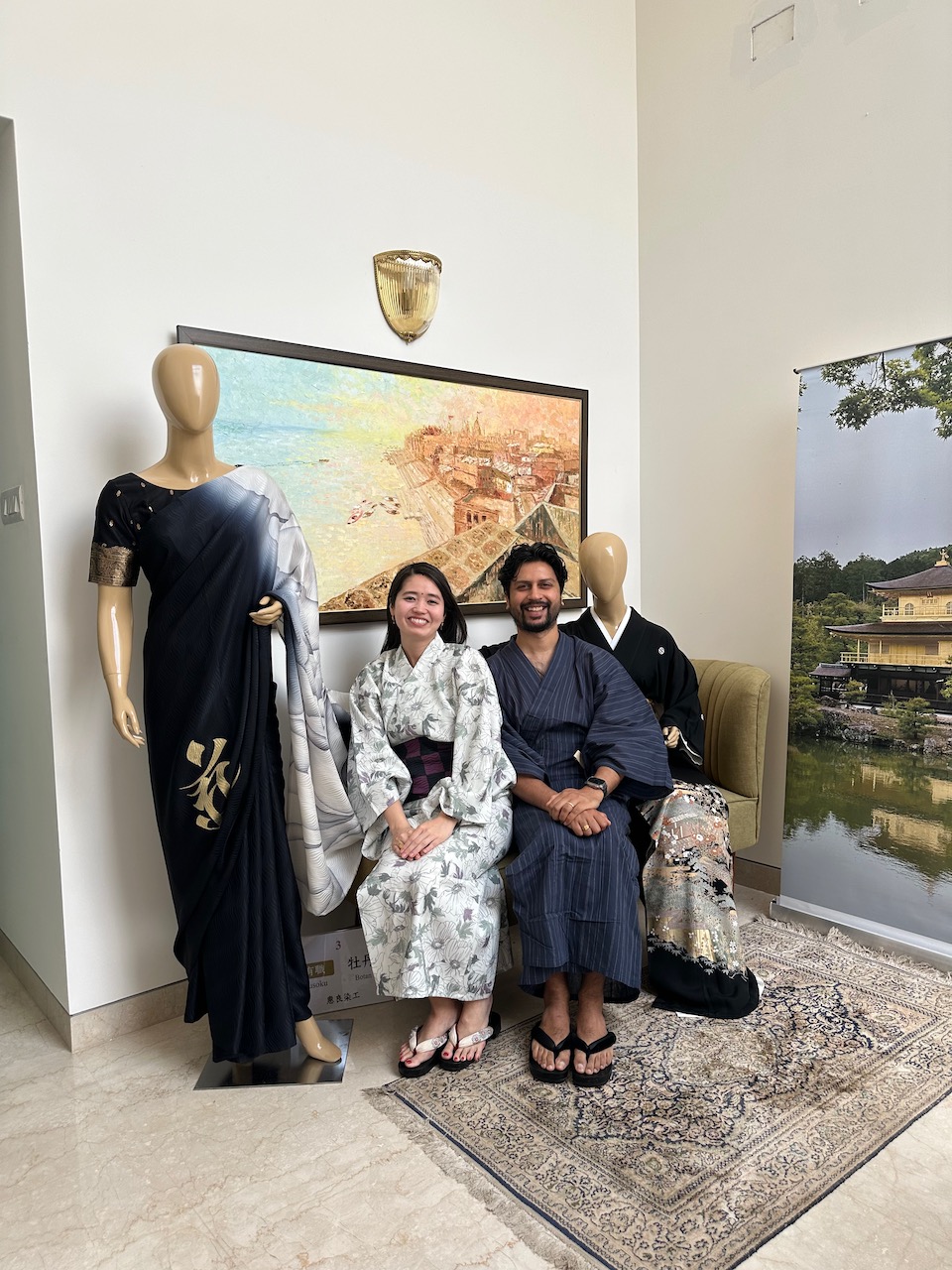 わたしは京友禅サリーのインドにおけるブランド・アンバサダーを依頼されていることから、実際に着用した感じを見てもらうためにサリーを着用しているが、あくまでも「お借りして」いる状態。取り扱いも丁寧に、汚さぬよう、気を遣っている。