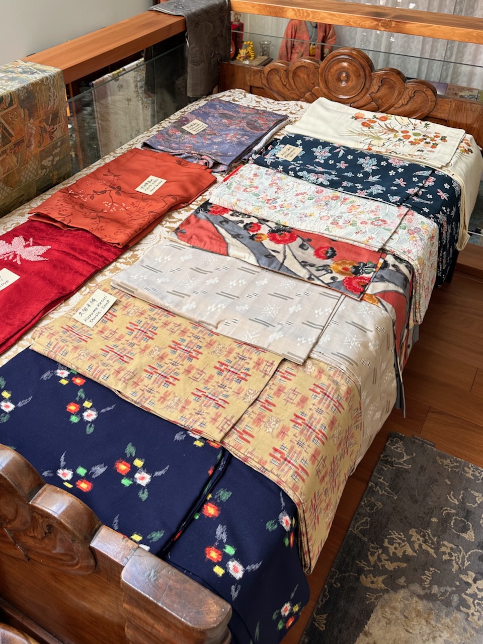 一方、この大判ストールは、同じ丹後縮緬の正絹でも異なる質感。光沢はなくマットで、ふわふわと軽くて扱いやすい。
