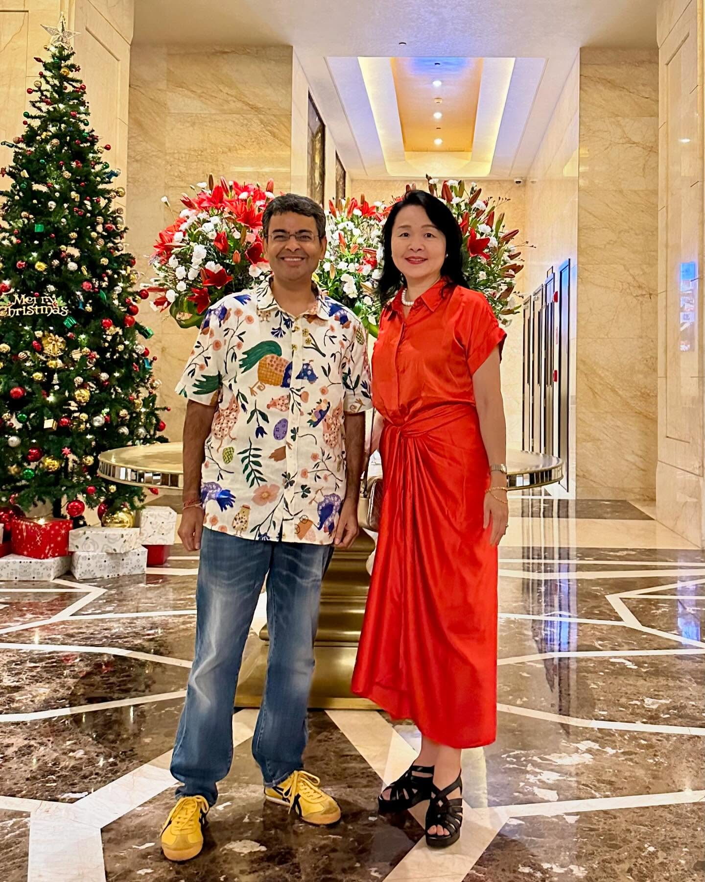 京友禅サリー展示会を間近に控え、土曜日はまたしてもサリー姿でパーティへ赴いた。友人Anjum夫妻の結婚30周年パーティがConrad Hotelで盛大に開催されたのだ。