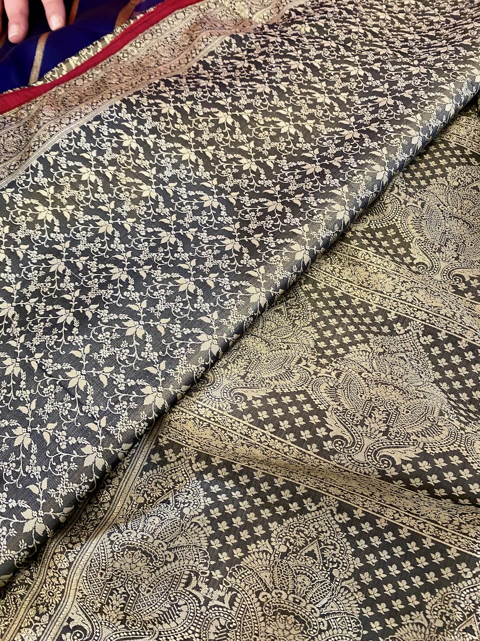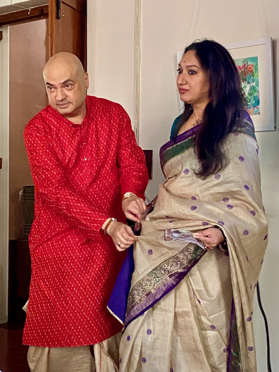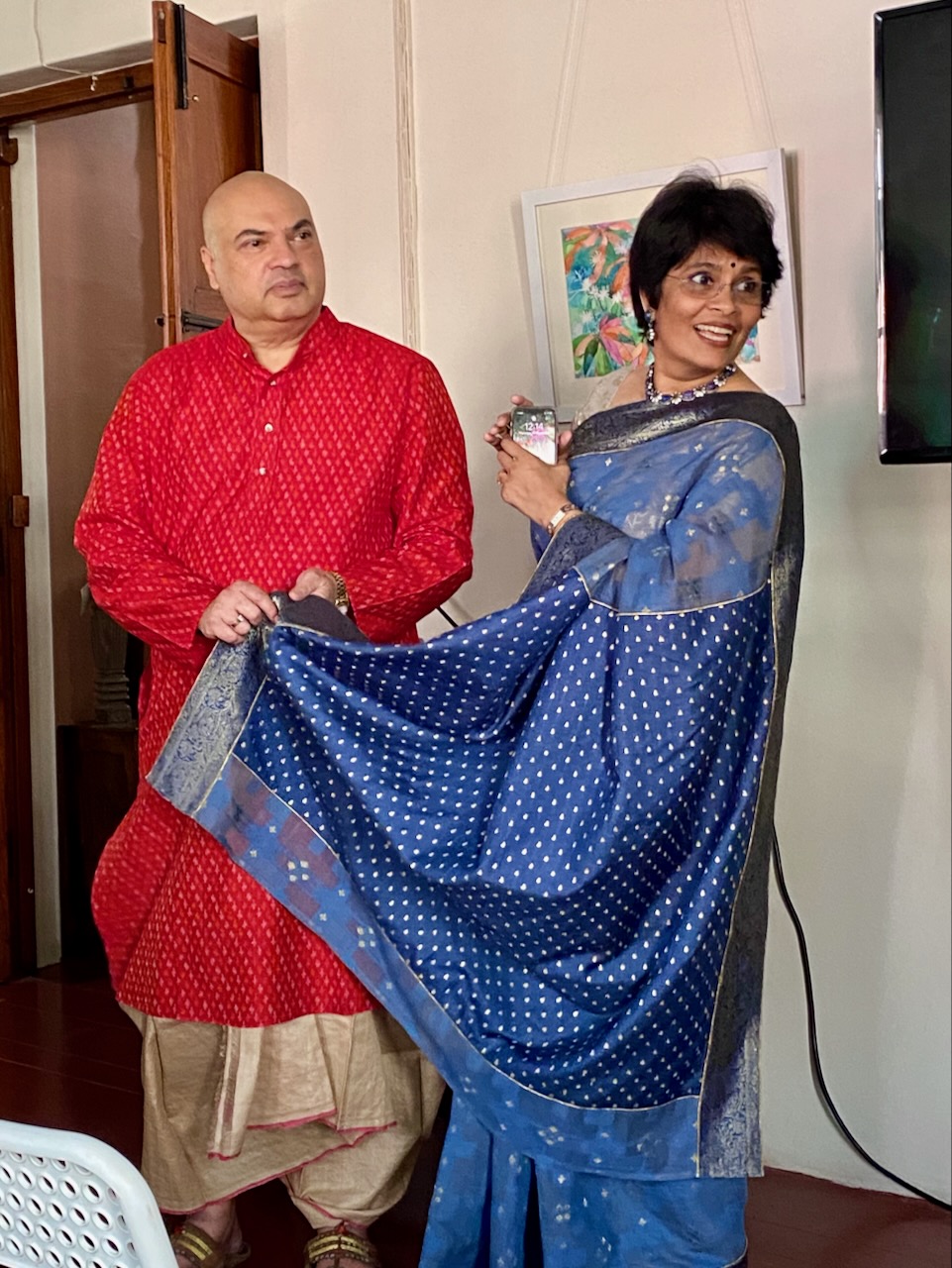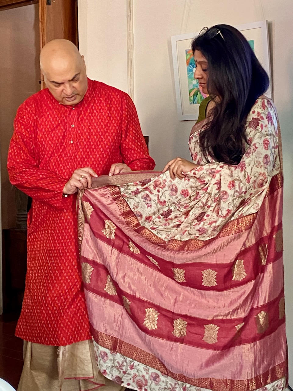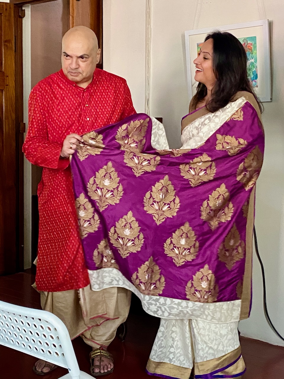🇮🇳In the first photo, Ashdeen is holding a Kyoto Yuzen saree. I am holding Ashdeen’s Saree named “KYOTO”.