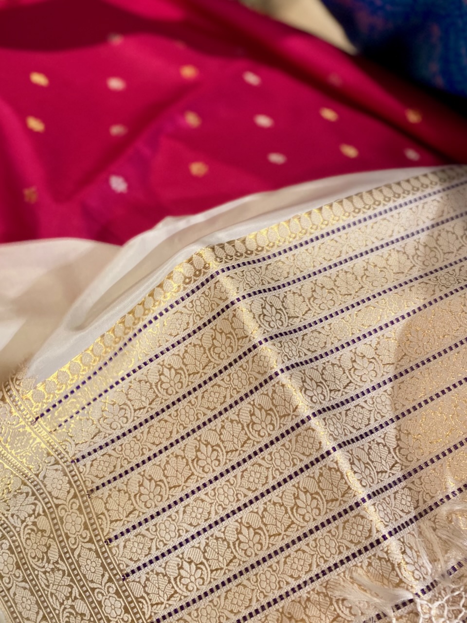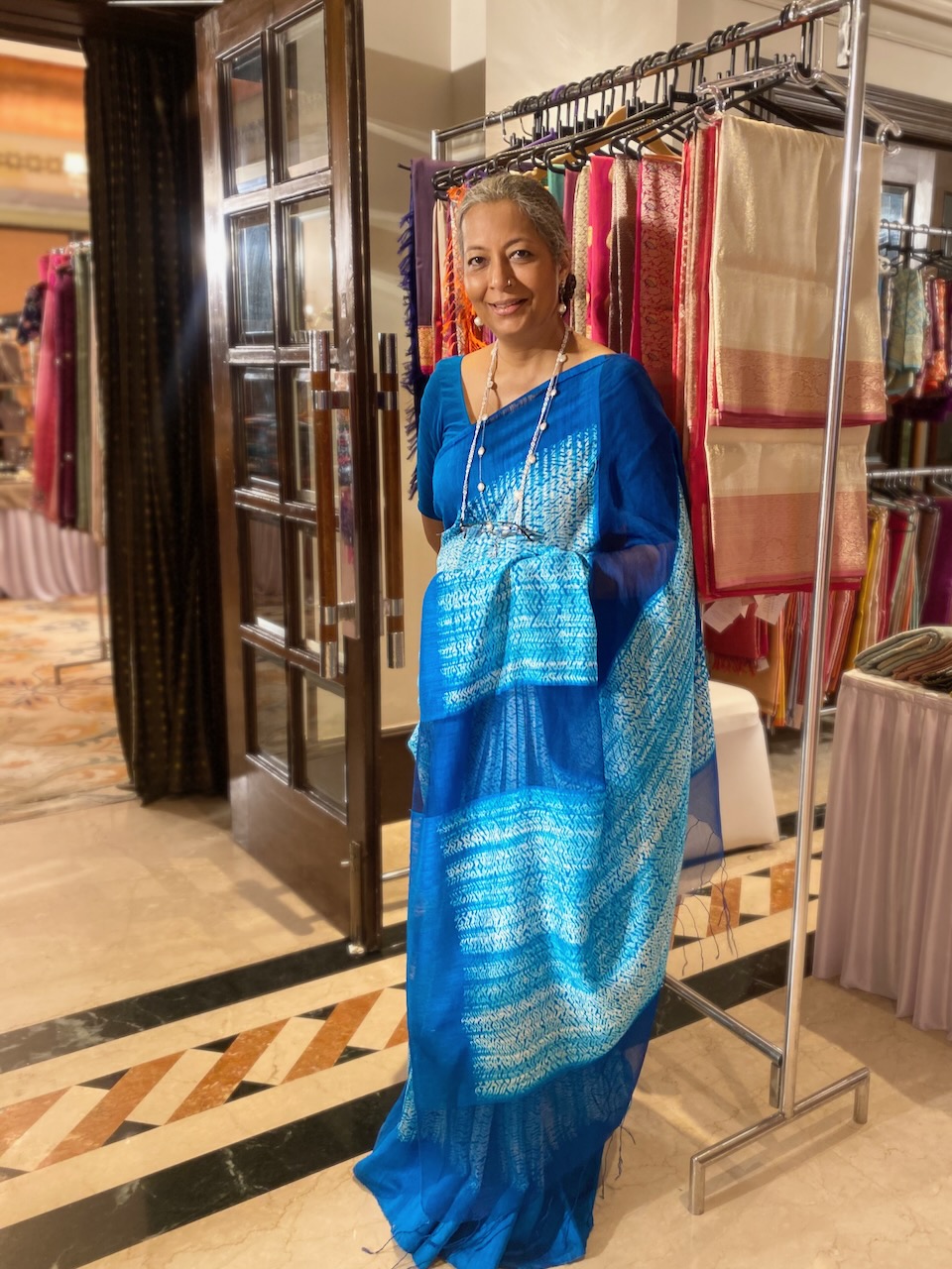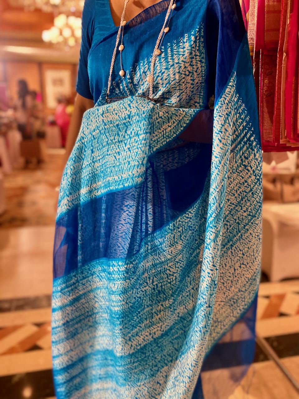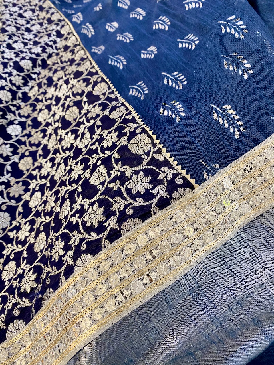 🇮🇳In the first photo, Ashdeen is holding a Kyoto Yuzen saree. I am holding Ashdeen’s Saree named “KYOTO”.