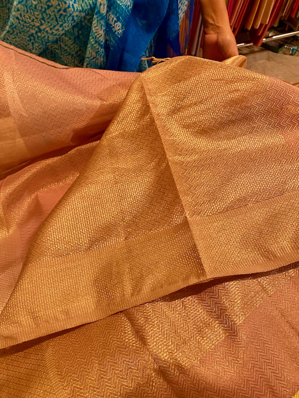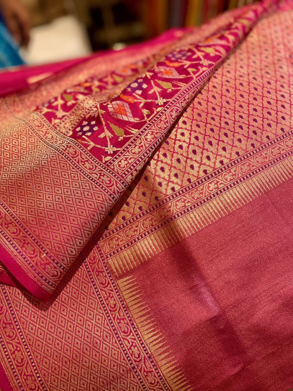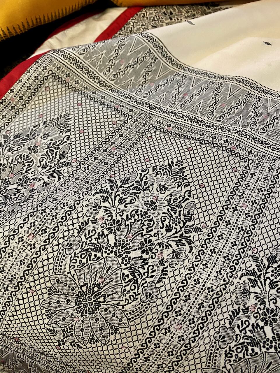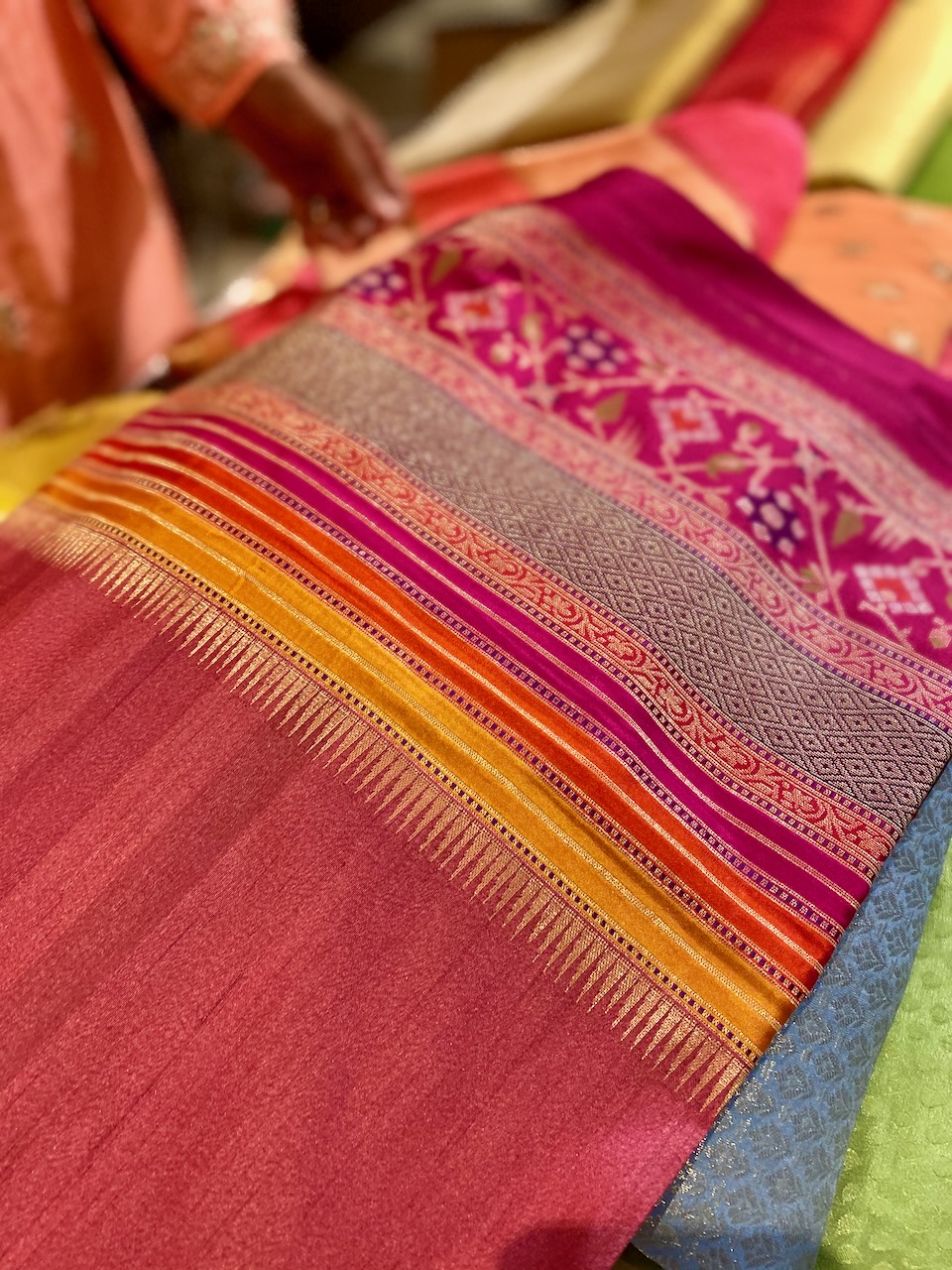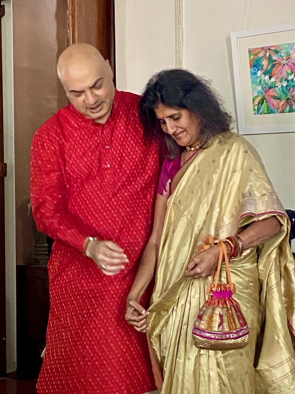 🇮🇳In the first photo, Ashdeen is holding a Kyoto Yuzen saree. I am holding Ashdeen’s Saree named “KYOTO”.