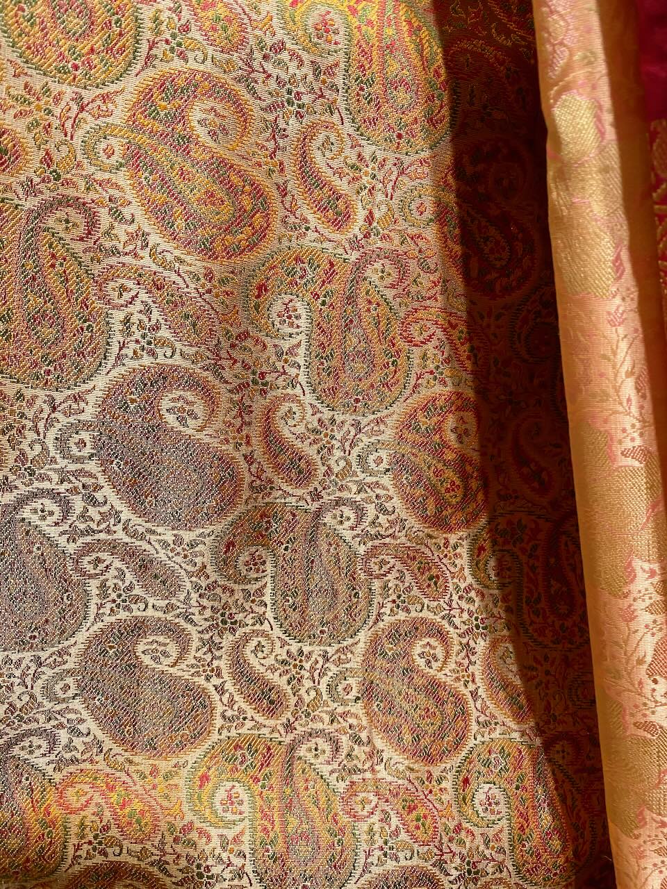 “Joy Roy’s heartening endeavor of resurrecting vintage sarees stems from him upcycling some of his late sister, Yashodhara’s sarees for her friends who asked for a keepsake of her. Yashodhara had a prized collection of handcrafted sarees, enjoyed wearing sarees, and was admired for her choice of sarees as well as the grace with which she draped them. Working on some of his sister’s sarees, Joy realized he had a gift for and a love for reconstructing vintage textiles. This inspired him to team up with Radhi Parekh, Founder Director of Artisans, a gallery in Mumbai, to take the initiative of revitalizing heritage textiles further.